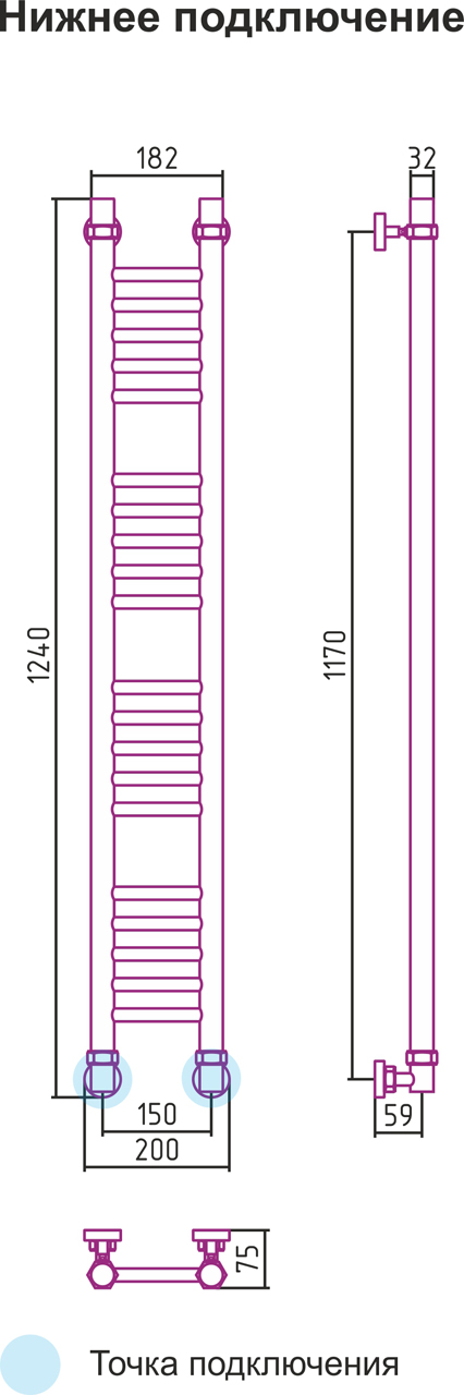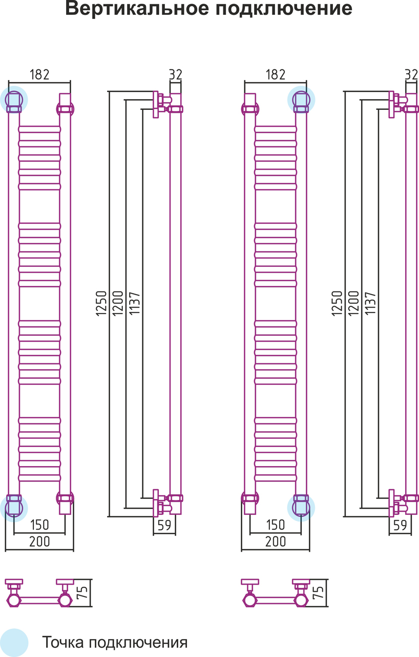 Вертикальное подключение, см