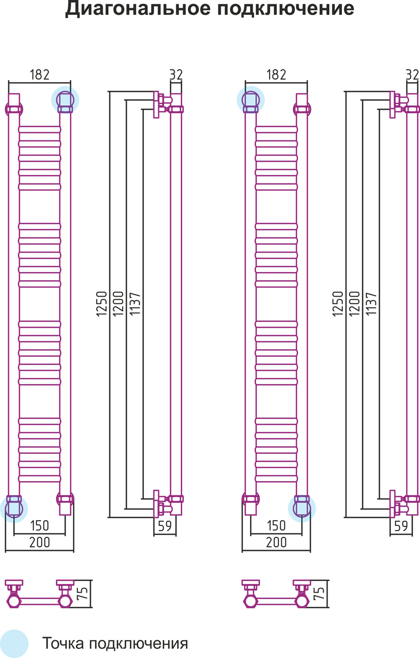 Диагональное подключение, см