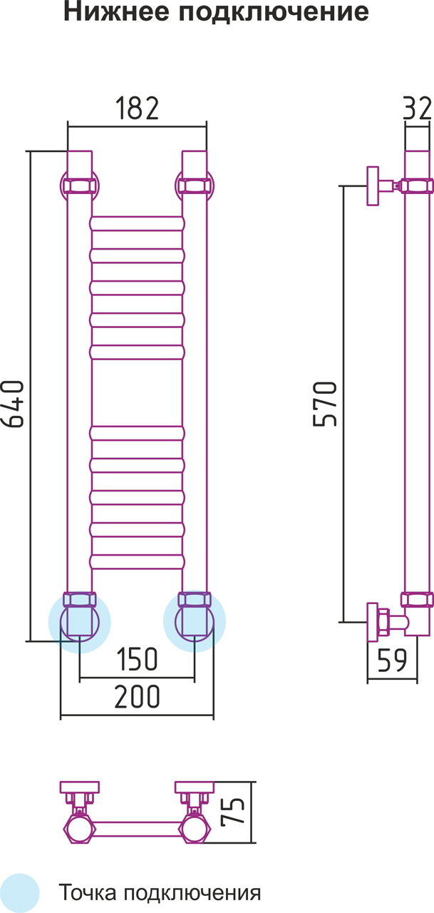 —Полотенцесушитель водяной Сунержа БОГЕМА+ прямая 600х150