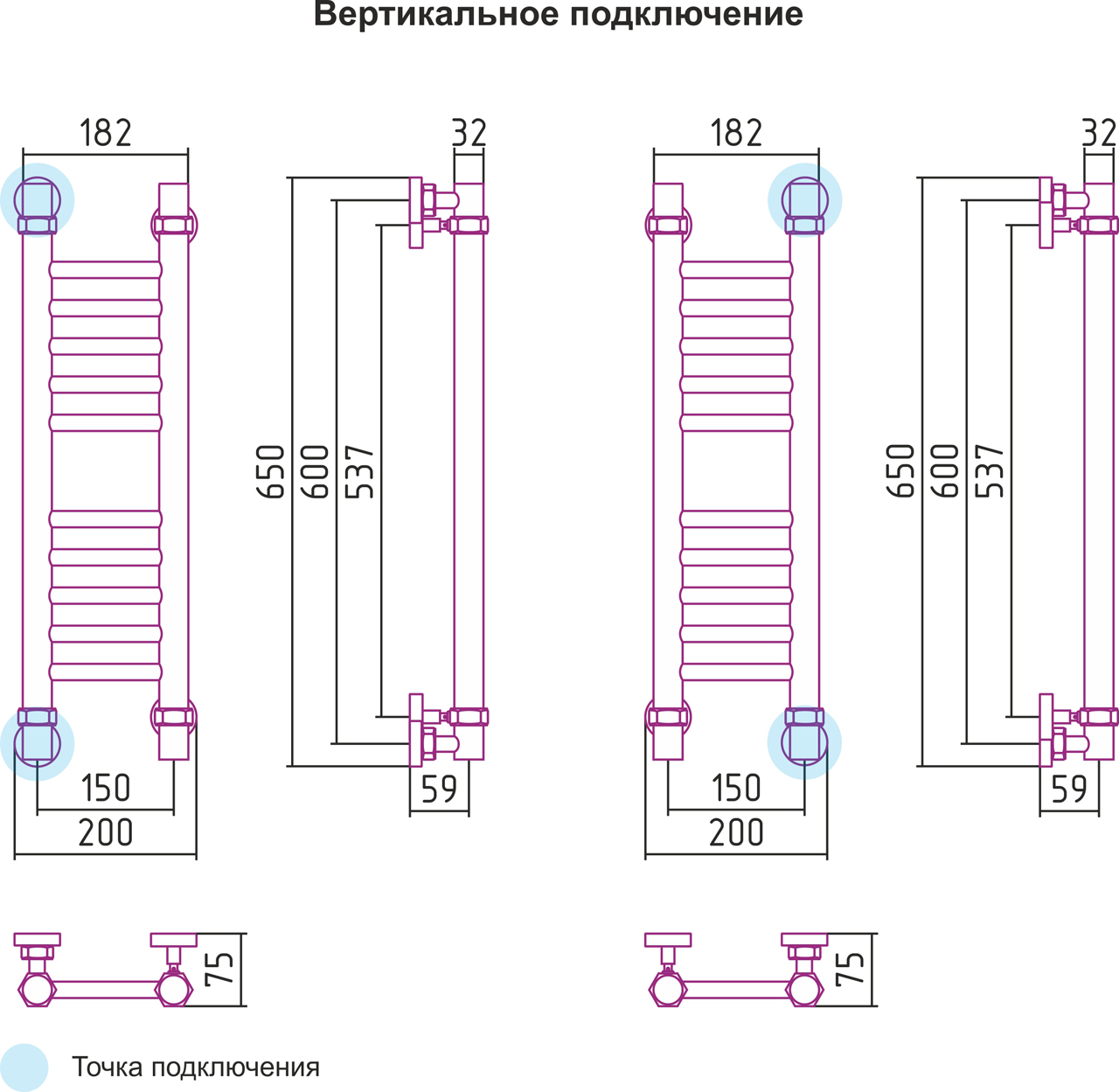 Полотенцесушитель водяной Сунержа БОГЕМА+ 00-0220-6015 600х150