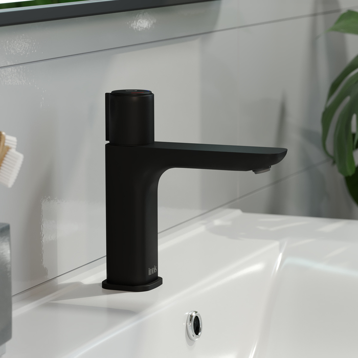 —Смеситель для раковины IDDIS SLIDE SLIBLBTi01 с кнопочным управлением черныймат