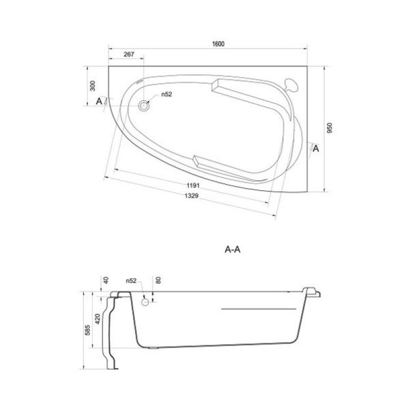 Ванна акриловая Cersanit JOANNA 63339 160x95 см. правая